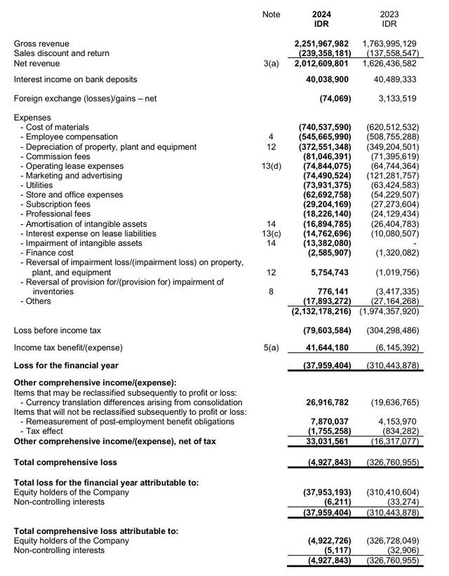 On the balance sheet, total assets increased to 1.95 trillion rupiah from 1.85 trillion rupiah, while total liabilities rose to 552.5 billion rupiah, largely due to higher lease liabilities linked to its physical store footprint.